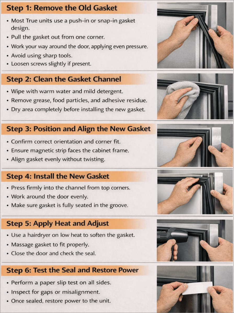 Following a structured True refrigerator door gasket replacement process restores proper sealing and temperature stability.